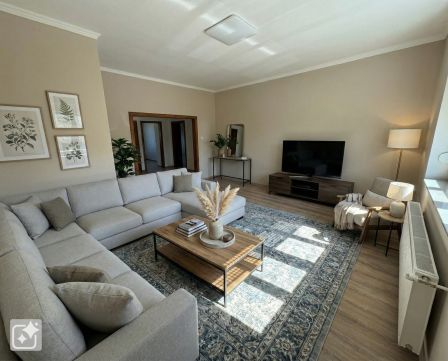 Eladásra kínálunk, egy teljes körűen felújított, 2 szintes tégla építésű szigetelt családi ház emeleti, 100 m2-es 3 szobás lakását saját kertrésszel, 1 autónak beállási lehetőséggel. Fűtésrendszere Vaillant 24kW-os kondenzációs gázkazánról üzemel, 120 literes használati meleg vizes tárolóval szerelt, radiátoros hőleadással kialakított. Ablakai műanyagok, redőnyökkel szereltek. A burkolatoknál és a szanitereknél is prémium anyagokkal dolgoztak.