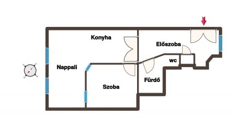 A konyha gépesített, egy légtérben található a nappalival, ami a két nagyméretű ablaknak köszönhetően kellően világos.