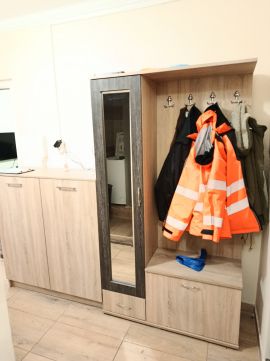 2023 december: festés, új nappali burkolat, beépített szekrények (10 mm laminált lap)