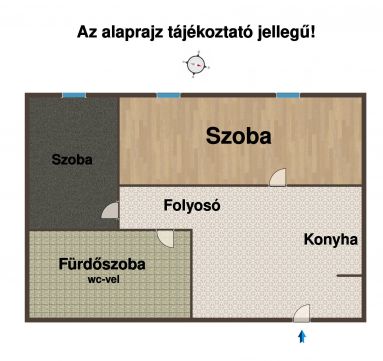 Műanyag nyílászárokkal rendelkezik, a nagyszobában laminált padló a kis szobában padlószőnyeg található