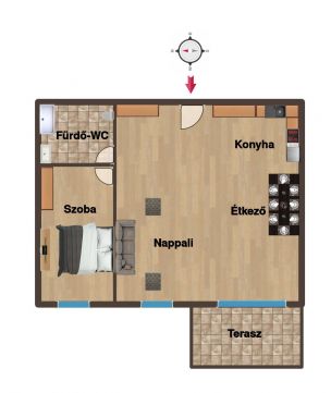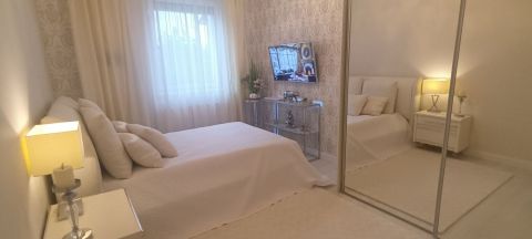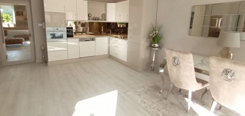 A lakás jellemzői: Tágas nappali és egy kényelmes hálószoba, melyek mind a modern designnak, mind a praktikus elrendezésnek köszönhetően kényelmesek és világosak. A nappali közvetlen kapcsolatban van a kerttel, így a nappaliból egy szép, privát teraszra vezet, ahol a reggeli kávét vagy a nyári estéket élvezhetjük a természet közvetlen közelségében.