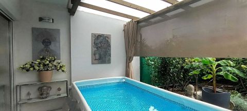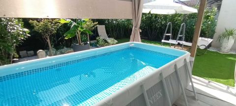 A kertben található egy gyönyörű pergolával fedett fűthető medence is, így a nyári hónapokban igazi pihenőparadicsommá válik. Tökéletes helyszín a családi kikapcsolódásra vagy a barátokkal való pihenésre.
