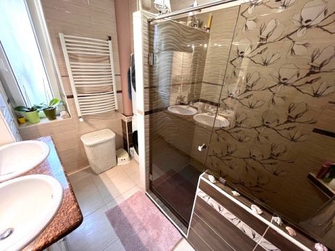 -épített nagyméretű tusolókabinos fürdőszoba, külön WC