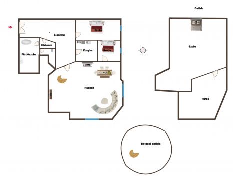 -belső 2 szinten 4 szoba + duplakomfortos fürdő, összesen 175 nm-en