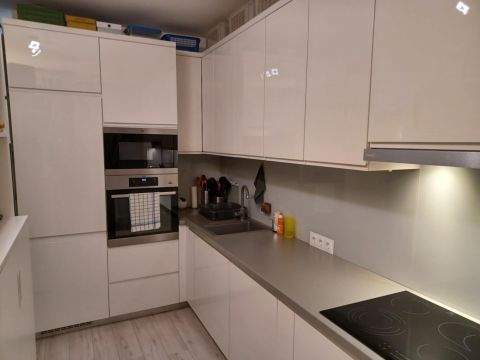 A magasfényű, modern konyhabútor gépesítéssel a vételár része.
