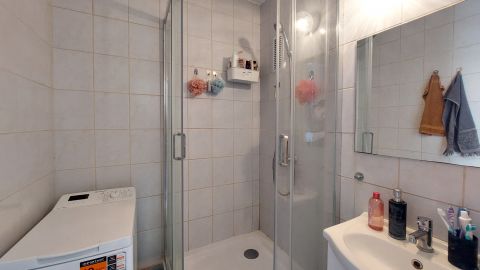 Cserélt burkolatok minden helyiségben, új konyhabútor.