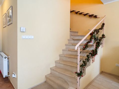 Elektromos redőnyök, beépített szúnyoghálók és egy, a lakásból közvetlenül elérhető garázs teszi kényelmessé a mindennapokat. A lakás riasztórendszerrel szerelt.