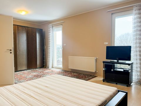 Tér az egész családnak: 2 tágas hálószoba, ami bármikor visszaalakítható az eredeti tervek alapján 3 hálószobás lakásra, lent és fent is zuhanyzós fürdőszoba, így a reggeli készülődés is problémamentes.. A tetőtérben tágas tér biztosít helyet az éppen nem használt dolgok tárolására.