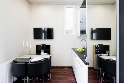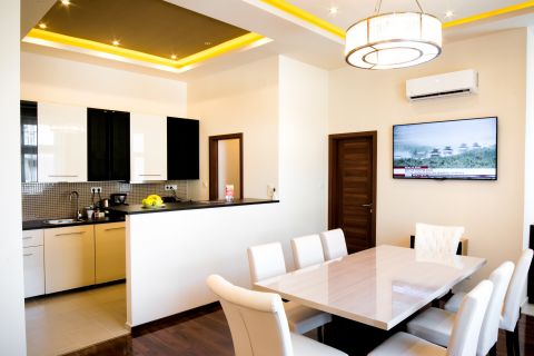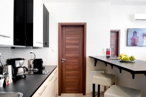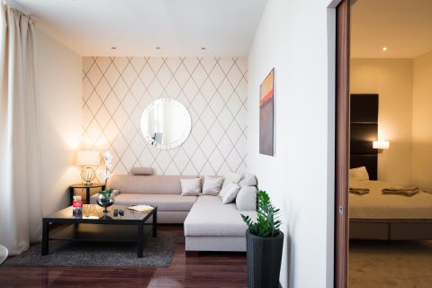 Mindegyik nappali plusz egy hálós lakás, a középső a legnagyobb és egyben a legszebb is, amelyben olasz dizájn bútorok is kerültek.