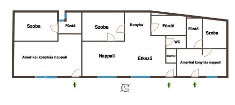 A lakások külön a függőfolyosóról nyílnak, belül nincsen átjárás. A fűtésrendszer közös (Nagyteljesítményű gázcirkó, puffertatrtály, külön keringtetés), de külön termosztáttal vezérelhető mindhárom lakás hőfoka, illetve mindegyikben klíma is van.