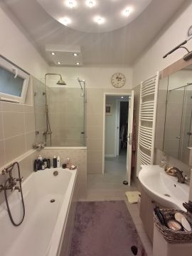 - fürdőszobája ablakos,tágas gyönyörű szaniterekkel ellátott, ( kádas + zuhanyzós)