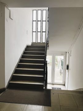 A well-maintained building from the 1960s; the stairwell was painted last year; a considerate and caring community of residents