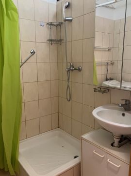 külön fürdő és külön WC, a közlekedőben beépített gardrób mind praktikus részei a lakásnak