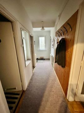 Parketta a szobákban és előszobában, modern hidegburkolatok a vizes helyiségekben
