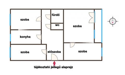 Két szoba és a konyha ablakai keletre, míg a másik két szoba és az erkély ablakai nyugatra néznek.