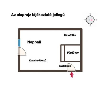 Az ingatlan ügyesen megtervezett elrendezésű: egy hálófülkéből, nappaliból, konyhából és fürdőszobából áll. Az egész lakás modern, minőségi anyagokkal lett felújítva, így az új tulajdonos közvetlenül költözhet, anélkül, hogy bármilyen felújítást vagy átalakítást kellene eszközölnie.