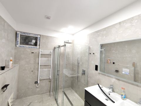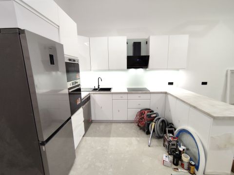 A lakásban, prémium minőségű konyhabútor lett beépítve extra gépészettel, / 230 L-es + hűtő 114 L-es fagyasztóval egybeépítve, mikró, sütő, 12 személyes mosogatógép, kivezetett elszívó, indukciós főzőlap, led világítás.