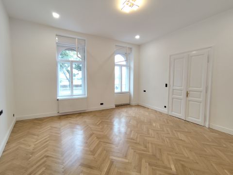 PARLAMENTTEL SZEMBEN EGYEDI LEHETŐSÉG, Dunára néző prémium minőségben felújított 98 nm-es két szobás magasföldszinti lakás a Bem rakparton, bérelhető.