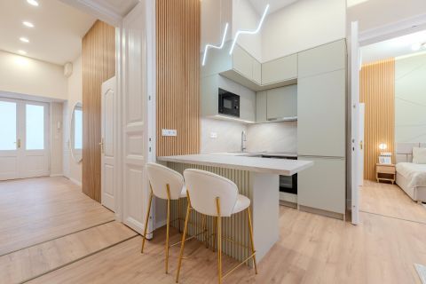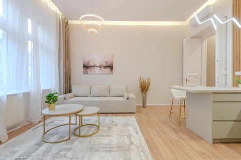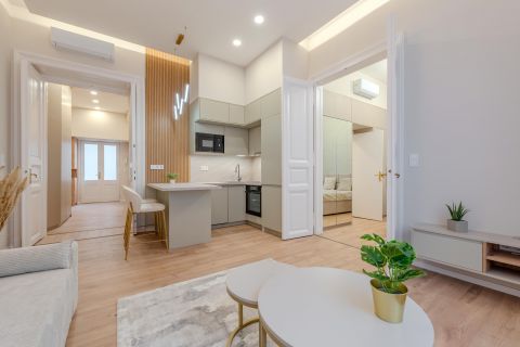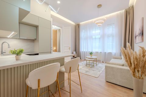 In the heart of Budapests 6th district, close to Deák Square and within walking distance of Andrássy Avenue, a 62 sqm, high-floor, bright, street-facing, fully renovated apartment is for sale in a well-maintained building with elevator.