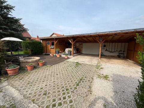 Az udvaron melléképület, fedett pihenőrész, bográcsozó és két gépkocsi számára fedett beálló található.