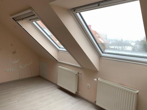 a tetőtéri fa ablakok 2024 decemberében cserélve lettek, korszerű Velux műanyag nyílászárókra