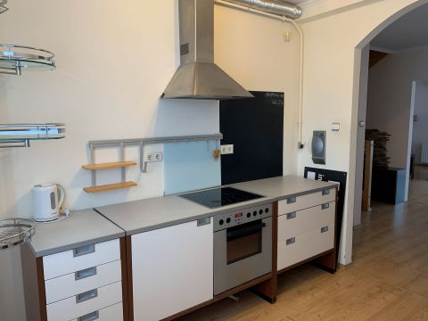 világos, nagy nappali, erkélykapcsolattal, belső udvari kilátással