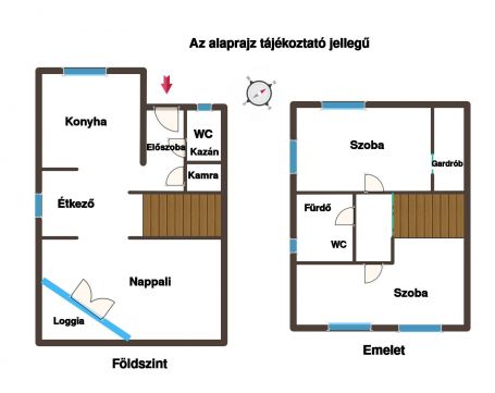 a bejárattól balra külön illemhelyiség, cirkókazán helyiséggel