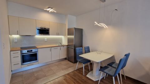 A konyhában beszerelésre került a mosogatógép, mikró, sütő, főzőlap, hűtőszekrény és a szagelszívó, így ide tényleg csak költöznie kell!