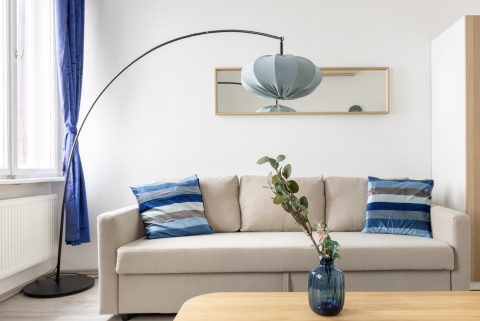 The apartment combines classic downtown charm with modern comfort. Thanks to its higher-floor position, it is quieter and filled with natural light.