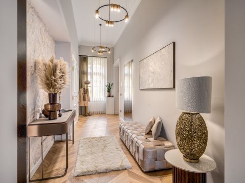 Az 5.kerület frekventált részén  eladóvá vált ez a 130 m2- es, erkélyes, napfényes, luxus kivitelezésben felújított, utcára néző, minden igényt kielégítő elegáns luxus lakás, amely egy rendezett, szép állapotú Társasház első szintjén található.