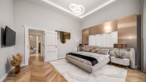 Hálószobák díszfalait lamellákkal és a 2025 év egyik legelegánsabb falpaneljeivel burkolták, melyek elegáns felületei különleges hatást kölcsönöznek a térnek. Ágyak egyedileg ide tervezett kárpit fejvégeket kaptak, melyek mögött led világítások teszik minél hangulatosabbá a szobákat. A fürdőszobákban kiváló minőségű szaniterek ( Laufren, Villeroy&, Rokka, Deluzzo) és a lakás stílusához illő olasz design burkolatok (Marazzi) kerültek. A nappaliban és hálószobákban elektromos napellenző, sötétítő függönyök, hűtő-fűtő klímák kerültek beépítésre. A lakást neves designerek dekorációi (Kare, Art deco,  Trusardi, IDdezing, Bo Concept, Einholtz stb.) teszik igazán modern elegáns hangulatúvá.