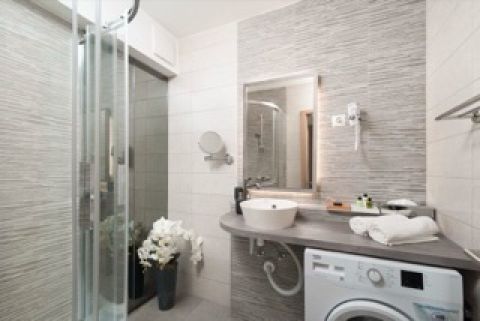 A ház rendezett, 62 lakásos, 24 órás portaszolgálattal.
