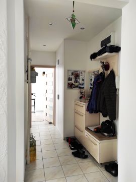 - erkélykapcsolatos, tágas nappali, egyik fal mentén mennyezetig érő beépített szekrénnyel, polcos, akasztós, fiókos elemekkel