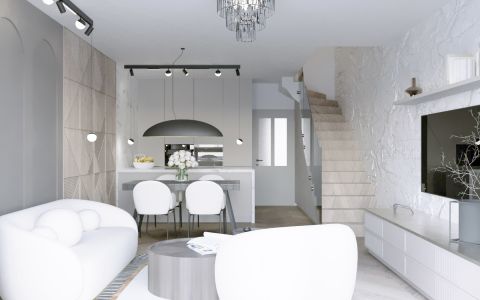 A nappali nagy méretű nyílászáróval kapcsolódik a külső teraszhoz és kerthez. Fűtés-hűtés és melegvíz ellátásról a lakásonként beépített hőszivattyúk gondoskodnak, helyiségenként szabályozható a padlófűtés és a mennyezethűtés.
