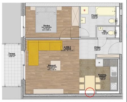 Élhető terek: Minden lakáshoz tartozik egy tágas, 5nm- 30 nm közötti terasz.