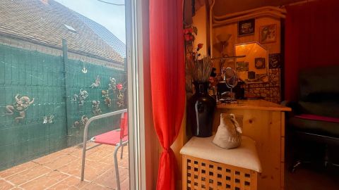 Ehhez egy nyitott terasz tartozik 5,07 négyzetméterrel, mely teljesen körbe van kerítve és árnyékolva van oldalról.