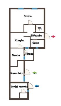 Tartozik hozzá egy kazánház, ahol a gázcirkó kazánt találjuk és egy nyári konyha is, melyek további 17,5 négyzetméter.