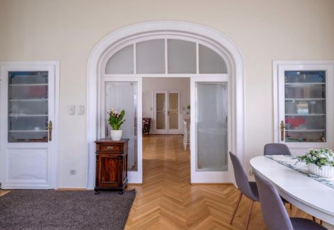 Rendkívül jó helyen, a Városligettől két percre, Zugló diplomata negyedében, a Stefánia úton klasszikus villaépületben 128 m2-es lakás eladó.