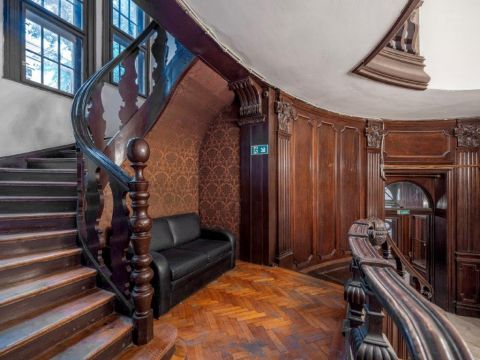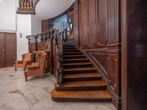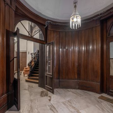 - impozáns előtér márványkandallóval, kristálycsillárral, eredeti fafaragásos lépcső és falburkolat