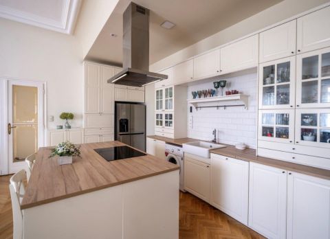 - beépített bútorok, készülékek, csillárok és márványkandalló benne vannak a vételárban