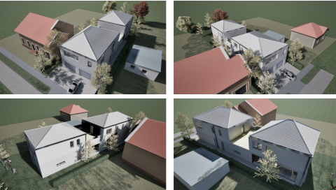 A 30 cm vastag Porotherm főfalak 12 cm-es dryvit hőszigeteléssel egészülnek ki, a tetőszerkezet Bramac Teglit Star beton cserépfedést kapott.