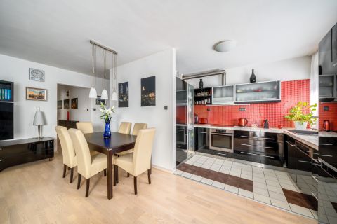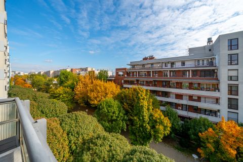 A lakás a Marina-part közvetlen közelében, a Duna és a Népsziget mellett helyezkedik el.
