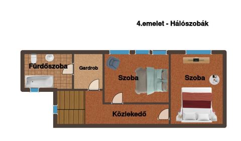 Háromszintes lakás 4., 5. emelet + tetőtér