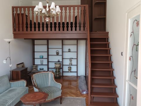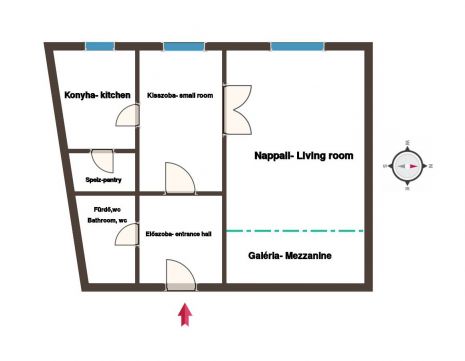 Elrendezés: 1+fél szoba + galéria, ami tágasabbá teszi a teret.