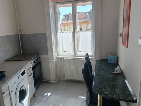 Pécs ikonikus helyszínén, közvetlenül a Széchenyi téren kiadó egy 46 m²-es, első emeleti, felújított lakás.. Az ingatlan egyik különlegessége az eklektikus belső dizájn: a modern, teljesen gépesített konyha és fürdőszoba tökéletes összhangban van a szobák polgári polgári bútoraival.