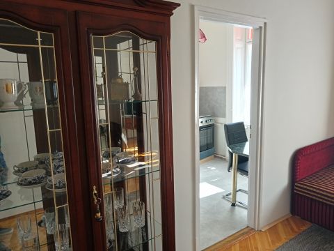 A 46 m², first-floor, renovated apartment is available for rent at Pécss most iconic location, directly on Széchenyi Square. The property features a unique eclectic interior design: a modern, fully equipped kitchen and bathroom in perfect harmony with the elegant, classic period furniture of the rooms.