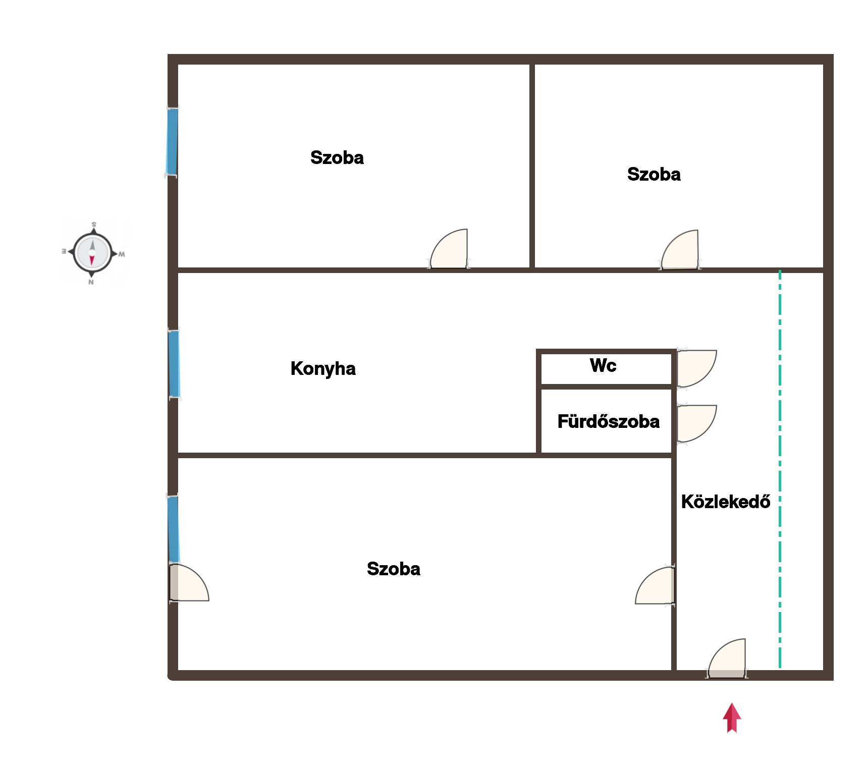 - 3 tágas, világos, különy nyíló szoba