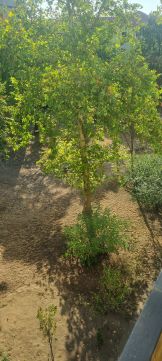 A tágas lodzsa csendes, zöld parkra néz ideális pihenéshez