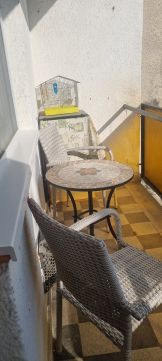A praktikus, esztétikus konyha új hűtővel és mikrohullámú sütővel felszerelt, az étkezőasztal mellett kényelmesen lehet étkezni