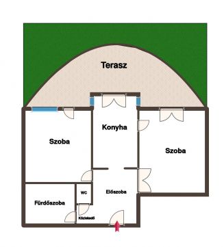 Mindkét szoba teraszkapcsolatos, különnyílóak, napfényesek. Jelenleg az egyik szoba a hálószoba funkciót, a másik szoba a nappali funkciót tölti be. A két szoba között helyezkedik el a konyha, melyet úgy terveztek, hogy az egyik oldalon közvetlen kapcsolatot biztosítson a terasszal, így a reggeli kávézásokat vagy esti pihenéseket a szabadban is élvezheti.